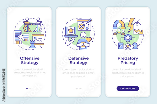 Biotechnologie mobilní aplikace onboarding obrazovky. Menu banner vektorová šablona pro vývoj webových stránek a aplikací. Genetické inženýrství, geneticky modifikované rostliny a zvířata.