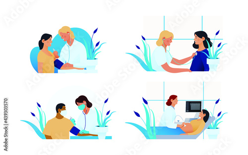 Porodní pozice set, vektorové ploché izolované ilustrace. Těhotná žena v práci podporovaná manželem. Maminky rodící sedící, stojící, klečící, ve vodě, pomocí porodní koule, polohy stolice.