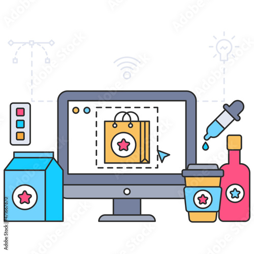 Bitcoin factory concept vektorové ilustrace. Tenký linkový plochý designový prvek pro webové bannery a tištěné materiály.