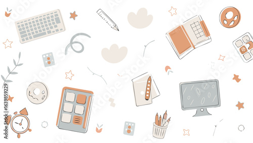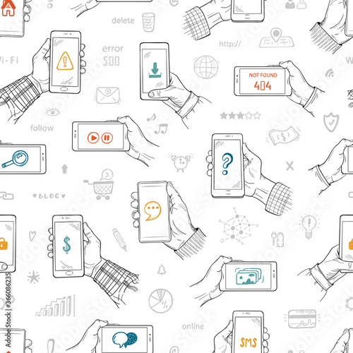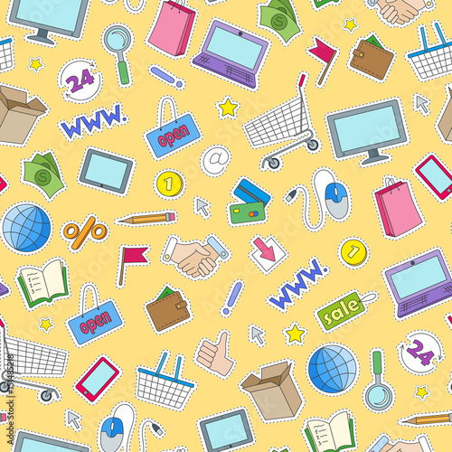 Bitcoin mining bezproblémové vzor. Vektorový moderní tenký design plochého stylu s ikonami a symboly těžby kryptoměn.