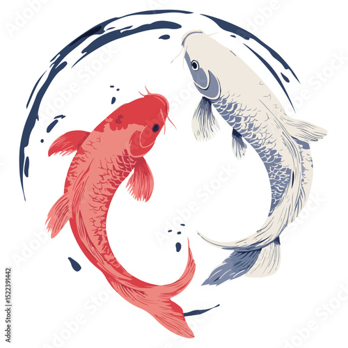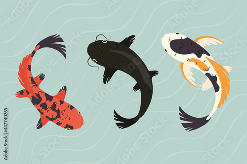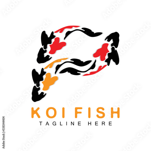 Černá a červená koi ryby vektorové ikony izolovaných na bílém pozadí.