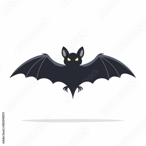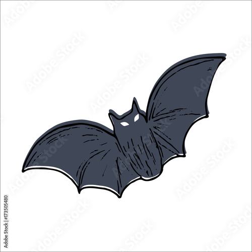 Černý netopýr létající vektor. Strašidelné černé zvíře stvoření charakter, strašidelné noční monstrum izolovaných na bílém pozadí