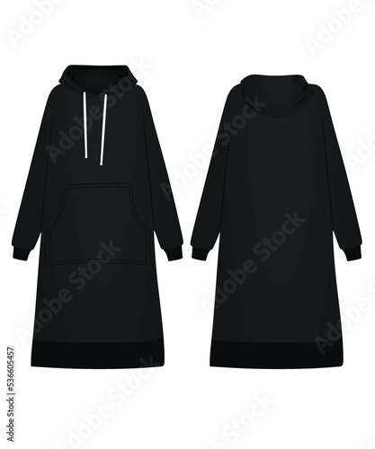 Černá župan maketa set, vektorové ilustrace izolovaných na bílém pozadí. Realistický měkký froté župan nebo župan pro lázně a koupelnu, přední a zadní pohled.