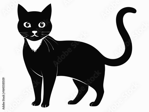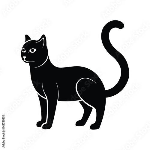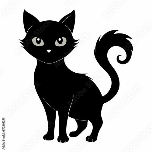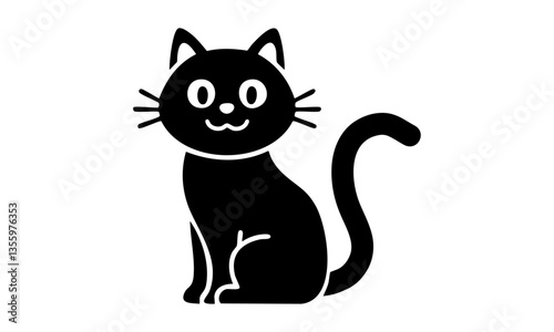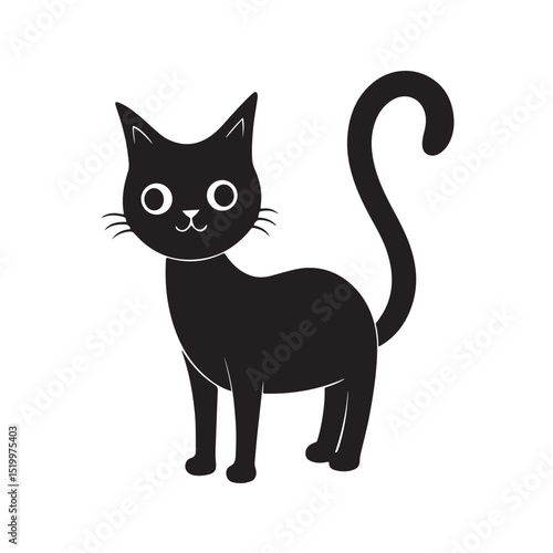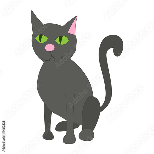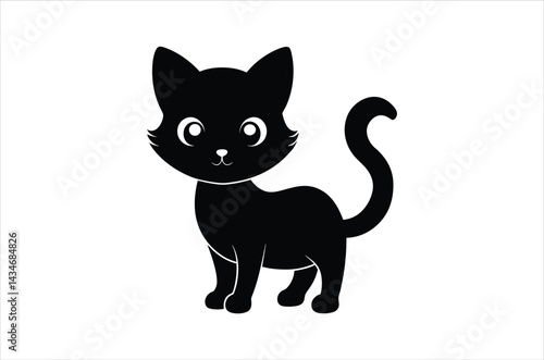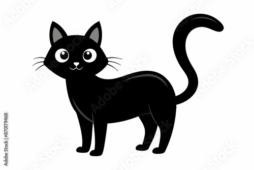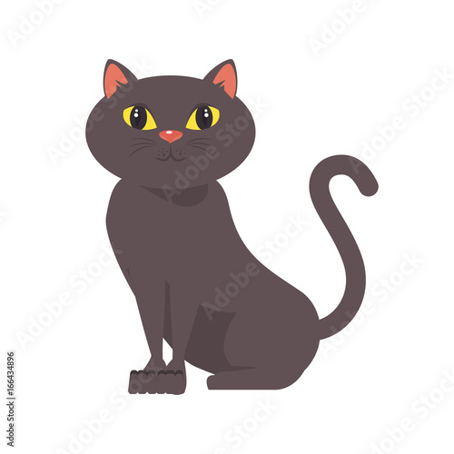Černá kočka vektor. Halloween kreslený Roztomilý čarodějnice kotě pet zvíře ikona ilustrace chůze se zavřenýma očima izolovaných na bílém pozadí