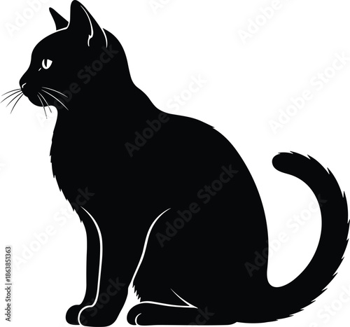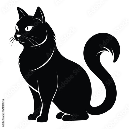 Černá kočka vektorové ikony izolovaných na bílém pozadí