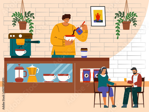Černá žena veterinář zkoumání kočka koncept vektorové ilustrace. Veterinář lékař léčení domácí zvířata. Zákazník s kočkou navštívit veterinární kliniku.