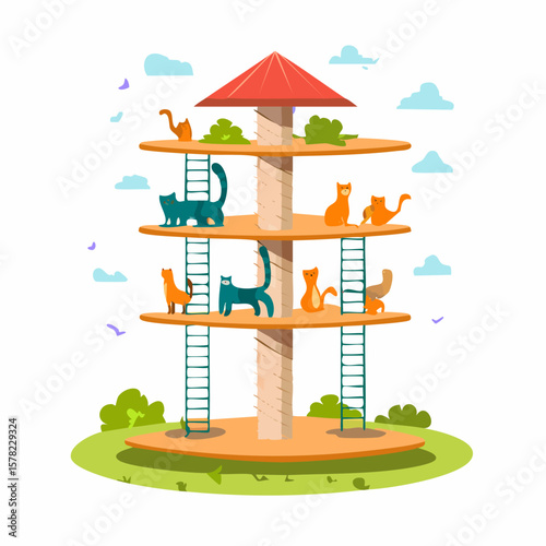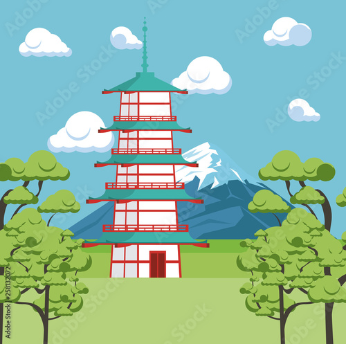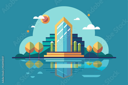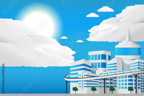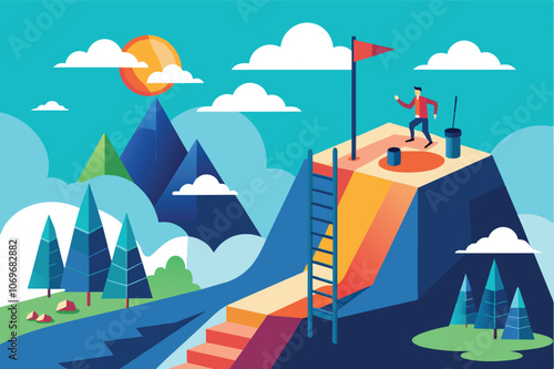 Prázdné pití vody plastová láhev, papír řezané hory, lesní stromy, vektorové ilustrace. Šablona reklam na čistou pitnou vodu.