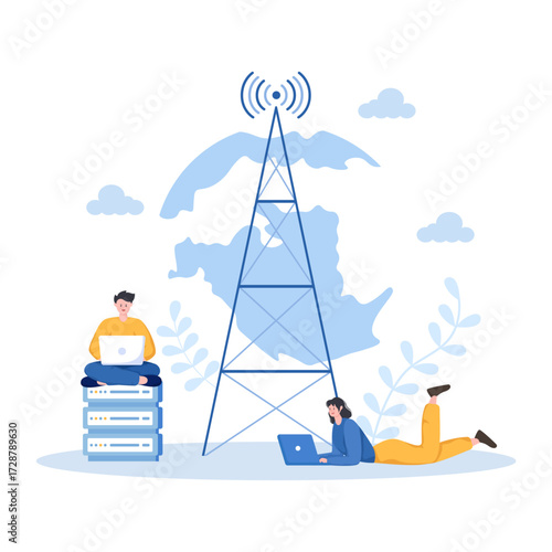 Prázdné pití vody plastová láhev, papír řezané hory, lesní stromy, vektorové ilustrace. Šablona reklam na čistou pitnou vodu.