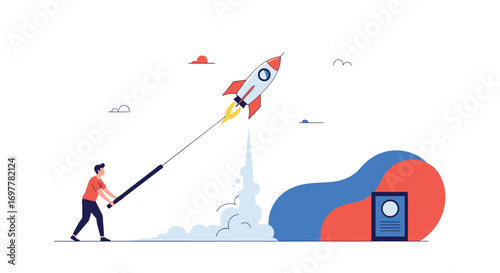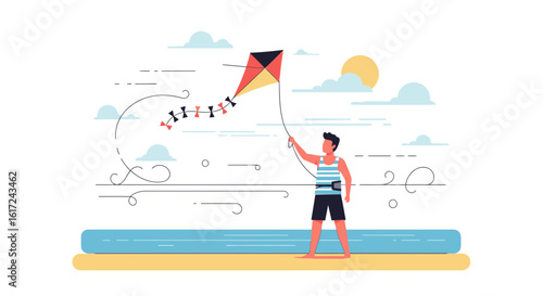 Slepý muž s hůlkou přecházející silnici u světel s přístupnými signály pro chodce a přechodem pro chodce s hmatovými varovnými dlaždicemi, plochá vektorová izometrická ilustrace. Bezbariérové prostředí.