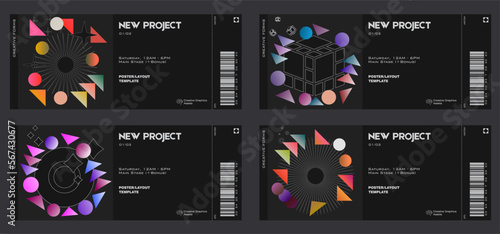 Kryptoměna a blockchain plakát, banner set. Vektorové zářící neonové světlo ilustrace. Prvky návrhu blockchainu, Bitcoinu, Ico a obchodního konceptu.