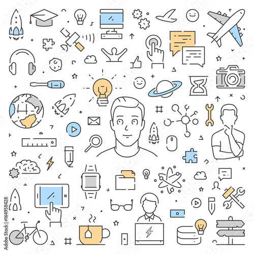 Blockchain technologie bezešvé vzor, vektorový moderní tenká čára plochý design.