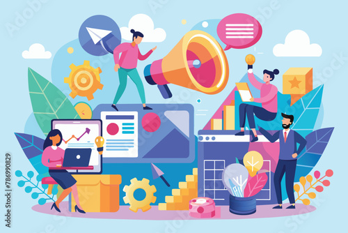 Blogger slaví šťastné 5. narozeniny blogu, ploché vektorové ilustrace. Blog výročí a úspěchy oslava.