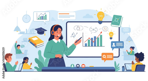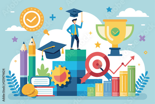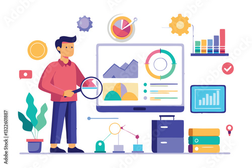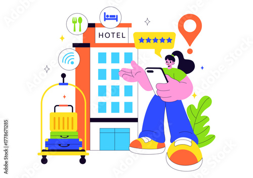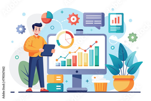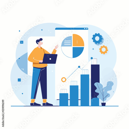 Blogger slaví šťastné 5. narozeniny blogu, ploché vektorové ilustrace. Blog výročí a úspěchy oslava.