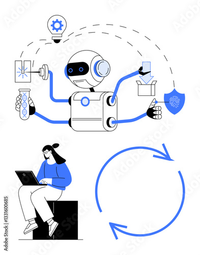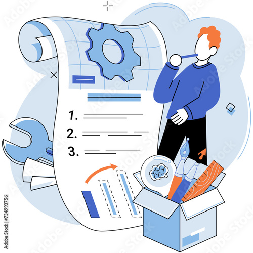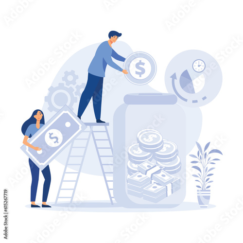Futuristické modré virtuální grafické dotykové uživatelské rozhraní hud, podnikatel lezení raketový žebřík. Vektorová ilustrace pro spuštění firmy, úspěch, budoucí technologie IP dashboard web banner webová stránka.