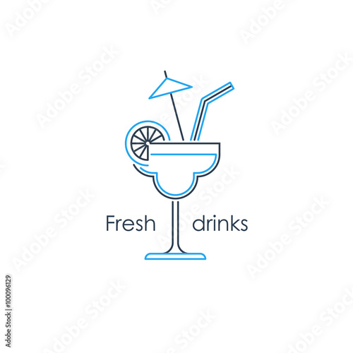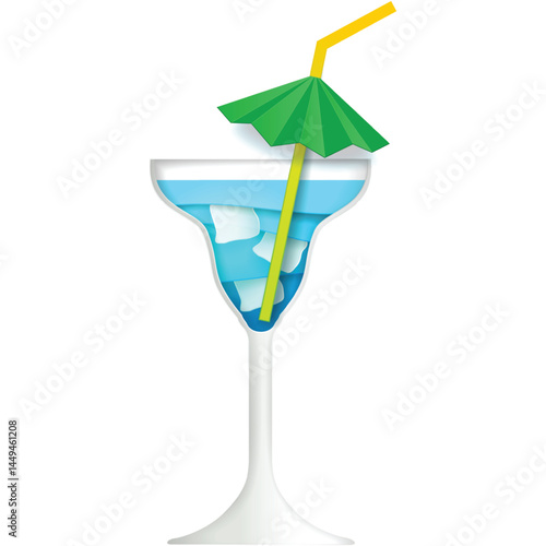 Blue Curacao koktejl vektor. Lagoon soda ice drink icon. Studená alkoholová limonáda s deštníkovou slámovou dekorací izolovaná. Letní tropický nápoj ilustrace izolovaných na bílém pozadí