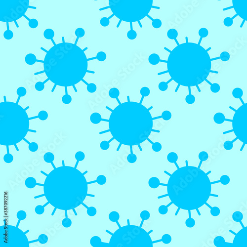 Modré virové buňky, bakterie a DNA s pozadím. Vektorová ilustrace konceptu viru Corona.