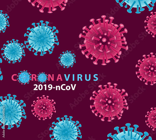 Modré virové buňky nebo bakterie na pozadí. Vektorová ilustrace viru Corona