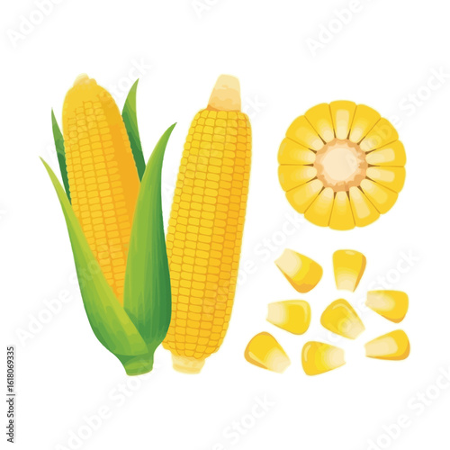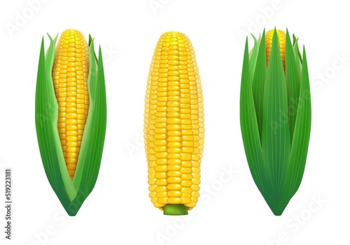 Vařené kukuřičné klasy vaření fáze realistické vektorové ilustrace sada. Lahodný recept na sezónní přípravu jídla