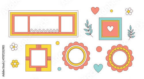 Rám pro fotografie na zeď pozadí vektorové ilustrace. Prázdné prázdné ohraničení interiéru. Rodinný obrázek, Umělecká galerie umělecká díla šablona s jinou formou a tvarem