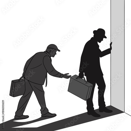 Důstojník pohraniční stráže ve vojenské uniformě a lékařské masce zobrazující zakázanou cestu k ikoně vektoru uprchlíků izolovaných na bílém pozadí. Koncept virové pandemie.
