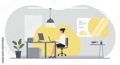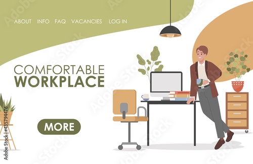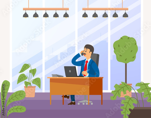 Vektorové ilustrace podnikatele v soukromé kanceláři. Moderní kancelářský interiér. Boss concept designový prvek v plochém stylu.