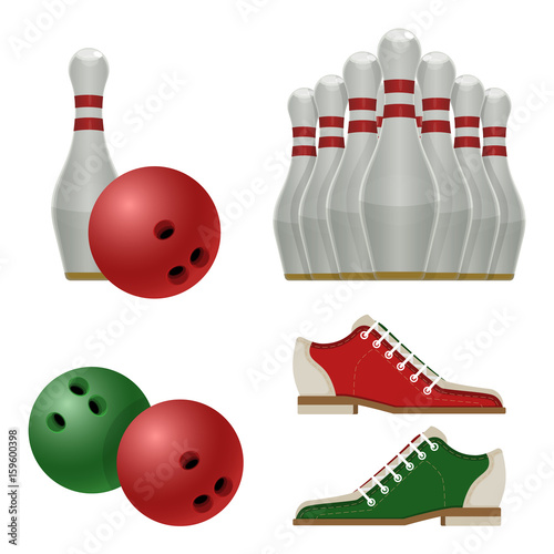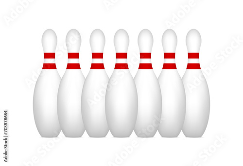 Bowlingová koule a kuželky vektorové realistické ilustrace na průhledném pozadí.