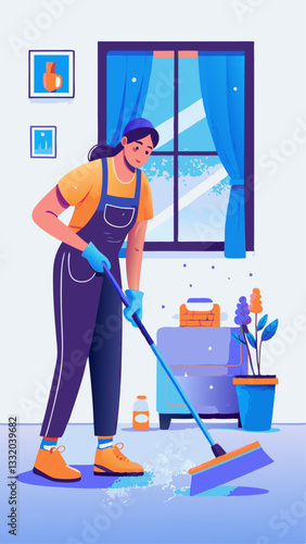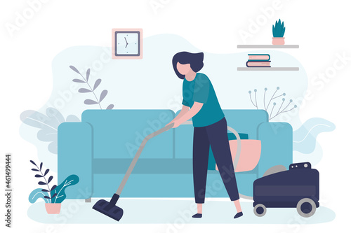 Chlapec vysávání koberců a čištění podlahy s vysavačem, ploché vektorové ilustrace. Dítě pomáhá svým rodičům dělat domácí práce. Úklid domu, úklid.