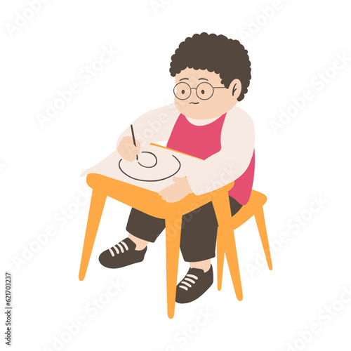 Chlapec školák studuje robotika předmět vektorové ikony izolovaných na bílém pozadí.