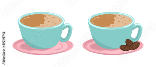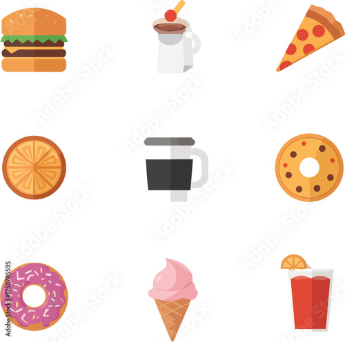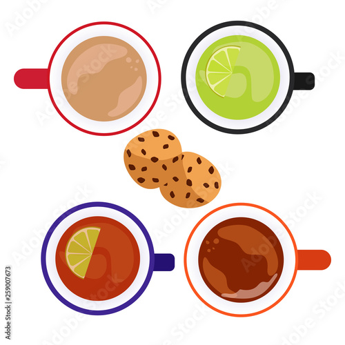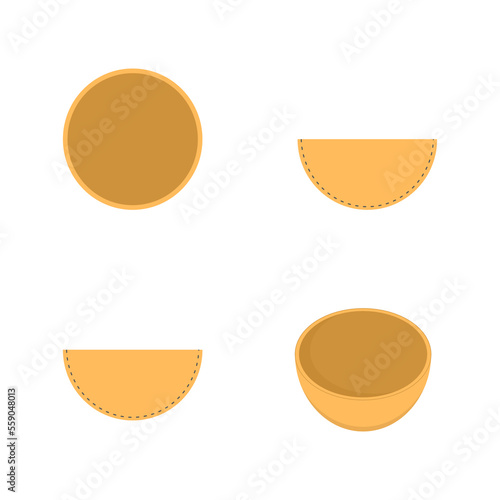 Snídaňový set. Vektorová ilustrace potravin. Ranní jídlo design. Smažené vejce, croissant, pomeranč nebo grapefruit k jídlu a hrnek s čajem nebo kávou k pití. Menu pro zdravý oběd nebo brunch koncept