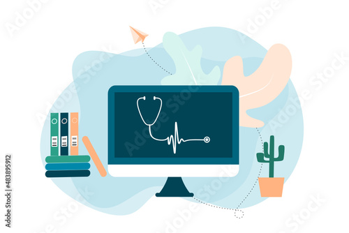 Nejnovější zprávy vektorový plochý styl designu ilustrace. Laptop, noviny, televize, videokamera, satelit. Novinky mass media koncept pro web banner, webové stránky atd.