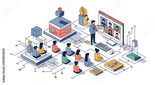 Rozhlasová a tisková Žurnalistika, ploché vektorové izometrické ilustrace. Rozhlasové a televizní vysílání. Tiskárna, polygrafie, tiskárna. Tisková média.