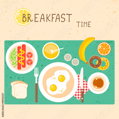 Snídaně formou bufetu vstupní stránky design, webové stránky banner šablony set, ploché vektorové ilustrace. Hotel, resort restaurace catering business.