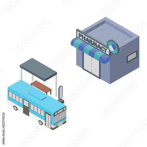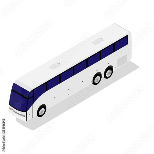 Autobusová izometrická 3D městská vektorová doprava. Veřejné osobní městské autobus vozidla izolovaných na bílém pozadí. Městská doprava 3D ilustrace