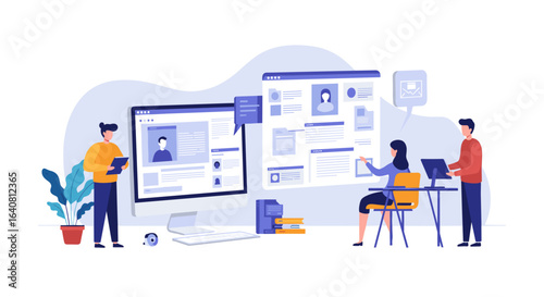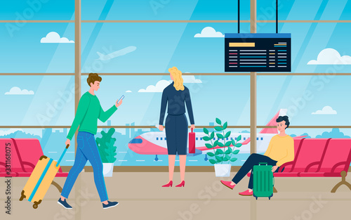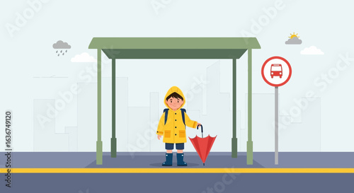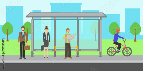 Vektorové ilustrace autobusové zastávky a lidí čekajících na městský autobus. Street traffic concept designový prvek v plochém stylu.