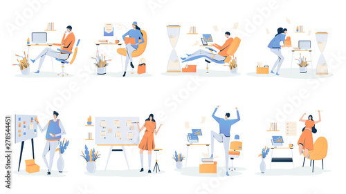 Obchodní bankrot set, vektorové ploché izolované ilustrace. Zklamaní, vyděšení, zmatení lidé kvůli bankrotu, ztrátě zaměstnání. Selhání podnikání, finanční krize, ekonomický krach.