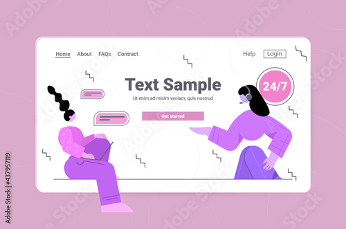 Business call concept. Telefonní operátoři pomáhají zákazníkům v centru podpory. Obchodní rozhovor telefonicky. Vektor web design šablony. Vstupní stránka webové stránky koncept ilustrace.