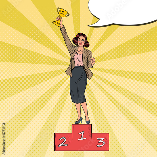 Obchodní koncept vektorové ilustrace v retro komické pop art stylu. Podnikatelka chodit na pevném laně.
