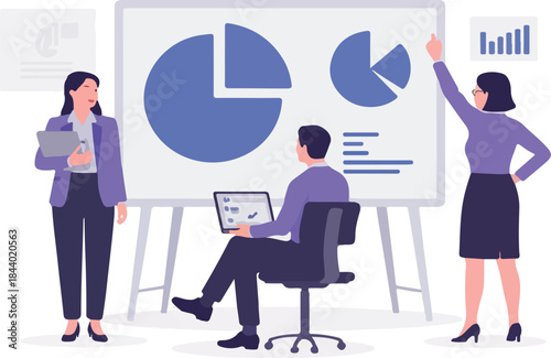 Obchodní konzultant, auditoři analyzující data, ploché vektorové ilustrace. Účetní závěrka nebo výroční zpráva, finanční audit a poradenské služby. Finance a účetnictví.