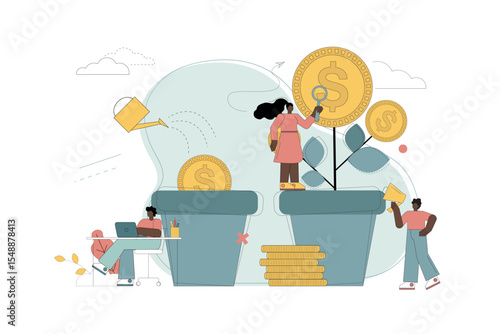 Vektorová ilustrace týmu malých podnikatelů, který sestavuje velkou skládačku. Tvorba úspěšných projektových a obchodních teambuildingových konceptů pro webový banner, webovou stránku atd.