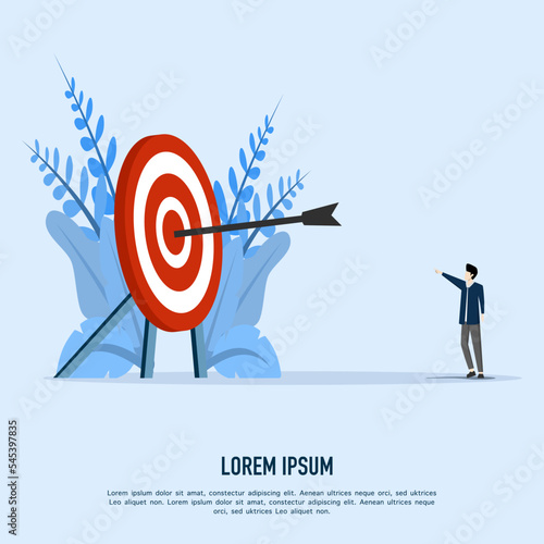 Vektorová ilustrace Bowmana střílejícího šíp. Podnikatel pozoruje luk ve středu cíle. Obchodní cíl koncept konstrukční prvek.
