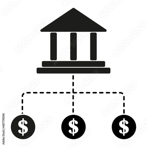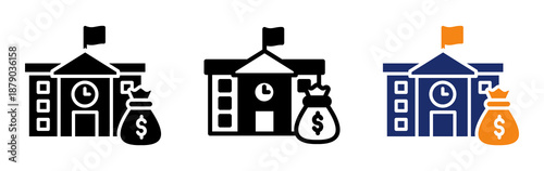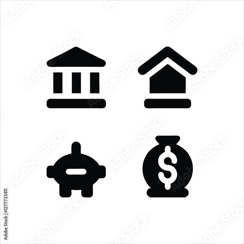 Obchodní ikona. Vektorová 3D taška, Aktovka, Peněženka na peníze a budova banky izolovaná ilustrace. Finanční portfolio kufr, dolar investice nebo kreditní symbol. Koncepce služeb bankovních institucí