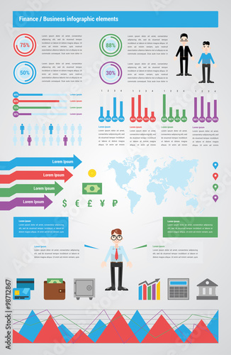 Obchodní ikony, vyhledávání dat, online kniha, zprávy, finanční zpráva. Mobilní aplikace onboarding obrazovky. Nabídka vektorový banner šablona pro webové stránky a mobilní vývoj. Design webových stránek plochý ilustrace.