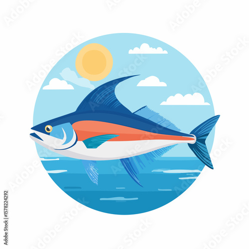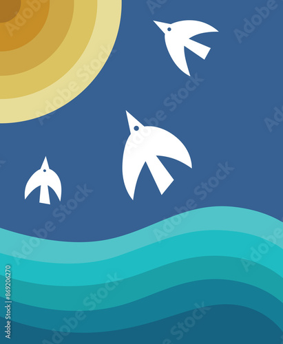 Business leader concept vector plakát v papírové umění origami stylu. Podnikatel při pohledu přes dalekohled stojící v lodi na vrcholu vlny oceánu. Koncept obchodního vedení.