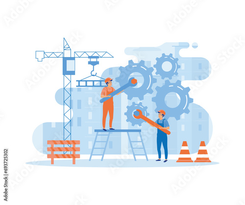 Vektorová ilustrace palubní desky office people building, uživatelský profil, komunikace, práce na notebooku. Business workflow, kancelářské situace, koncept analýzy dat pro webový banner, webovou stránku atd.