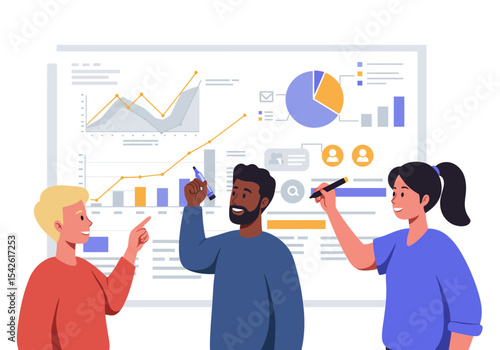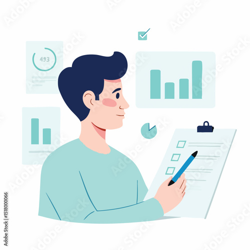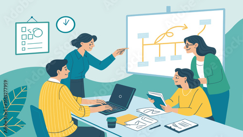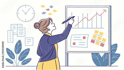 Podnikatelé, schránka s kontrolním seznamem, hodiny. Žena kontrola seznamu úkolů, muž ukazující ok ruční znamení, ploché vektorové ilustrace. Řízení úkolů, plánování, řízení času.