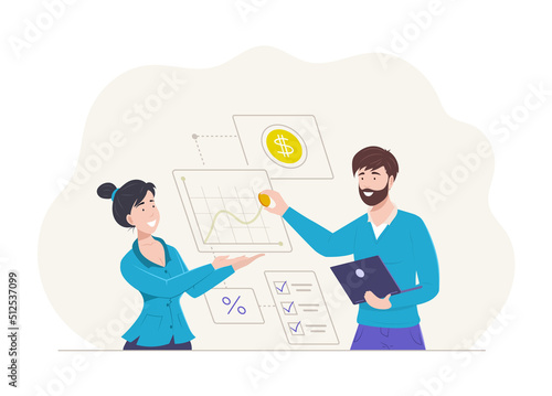Podnikatelé, schránka s kontrolním seznamem, hodiny. Žena kontrola seznamu úkolů, muž ukazující ok ruční znamení, ploché vektorové ilustrace. Řízení úkolů, plánování, řízení času.