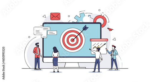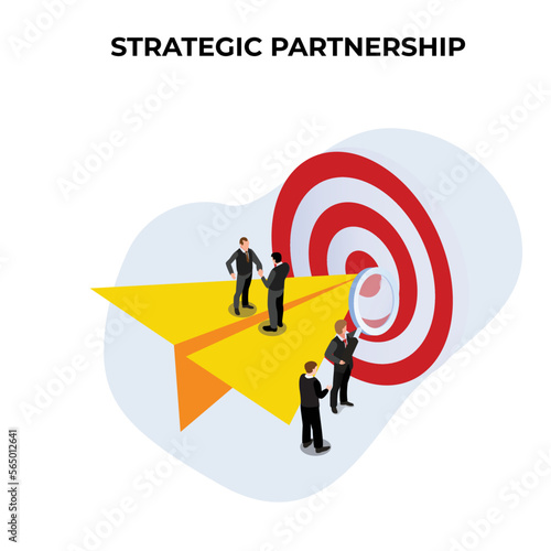 Podnikatelé spojující cílové kousky dohromady, ploché vektorové izometrické ilustrace. Týmová práce, spolupráce, partnerství.