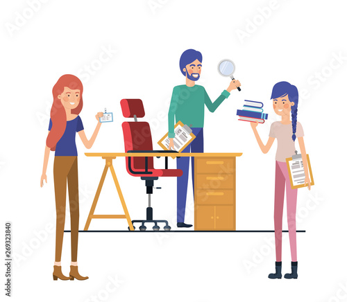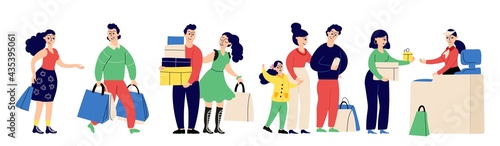 Podnikatelé ikona set, vektorový plochý styl designu ilustrace. Pracovníci kanceláře chodí do práce, prezentují se, uzavírají dohody, pracují v coworkingovém prostoru.