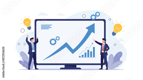 Diamant na obrovské obrazovce monitoru počítače a mikro mužské a ženské postavy s klíčem, šroubovákem, mobilním telefonem, notebookem, vektorovou ilustrací. Koncept spuštění podnikání pro webový banner, webová stránka.