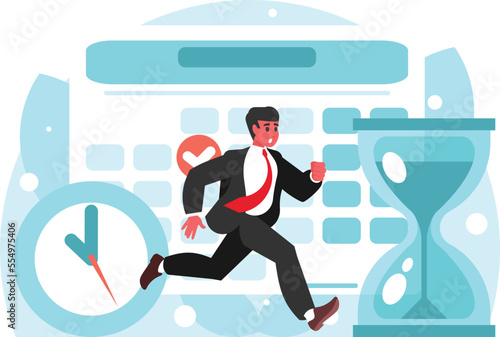 Vektorová ilustrace podnikatele s červenou stužkou utíkající z vlaku s nápisem korporace. Hrozí mu nebezpečí. Designový prvek konceptu podnikatelského rizika v plochém stylu